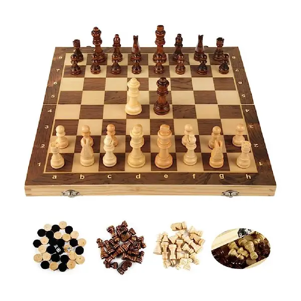 Ajedrez de madera 3 en 1 maleta portatil cantidad