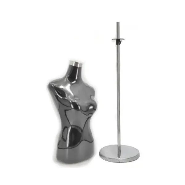 Maniquí de Torso femenino de mujer negro con pedestal redondo para exhibición
